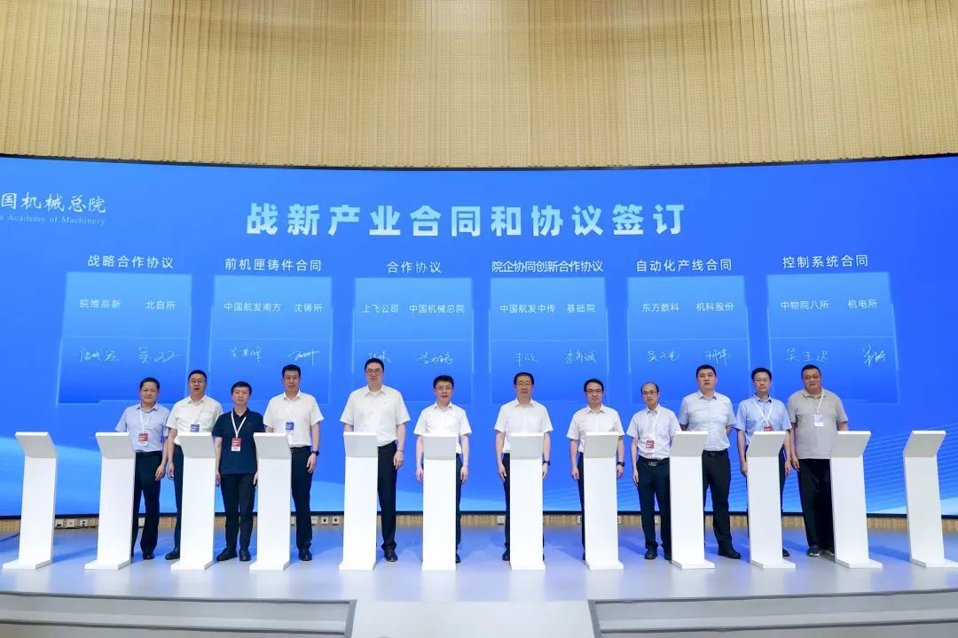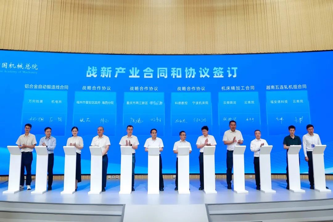 會上,中國機械總院集團及所屬公司沈鑄所、北自所、機電所、機科股份、基礎(chǔ)院、海西分院、寧波機床院、云南院等單位分別與中國商飛上飛公司、皖維高新、中國航發(fā)南方、中國航發(fā)中傳、東方數(shù)科、中物院八所、萬向錢潮、科德數(shù)控、云南錦潤、福州市晉安區(qū)政府、重慶兩江新區(qū)等12家企業(yè)和地方政府簽署戰(zhàn)新產(chǎn)業(yè)合同及協(xié)議。