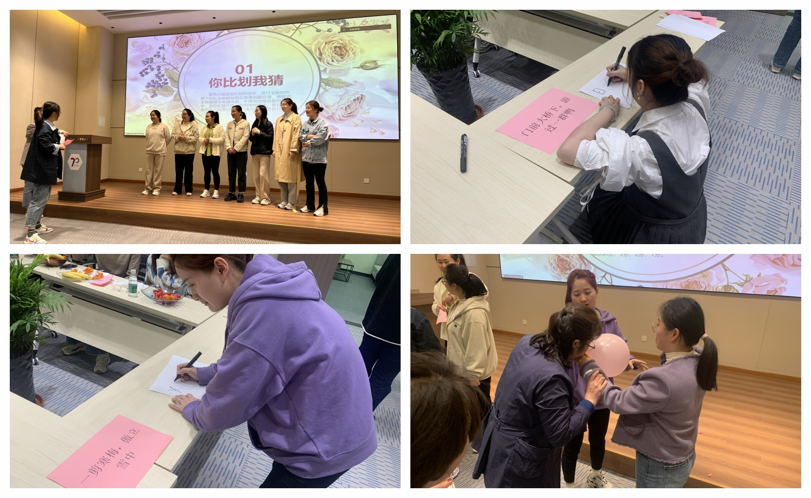 除此之外,今天的系列活動(dòng)還有“吸管傳鑰匙”、“協(xié)力吹氣球”、“畫畫傳歌詞”,一院的女同胞們不僅鍛煉了“腦力”,也鍛煉了“體力”,同時(shí)進(jìn)一步增進(jìn)了女性之間團(tuán)結(jié)互助的“合力”,大家在一片熱情洋溢的氛圍中愉悅了身心、舒緩了壓力。