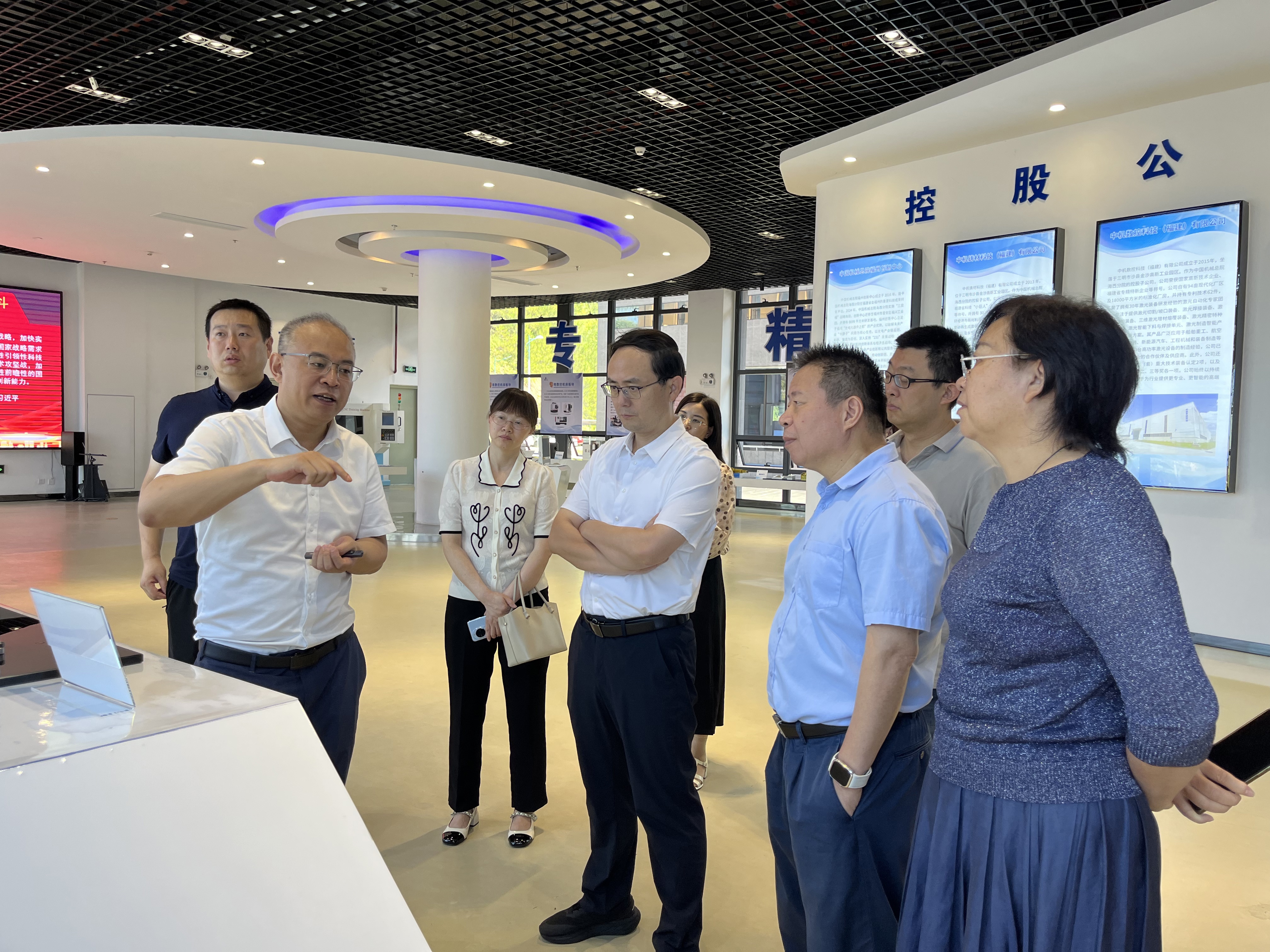 2025年7月4日,國家工信部火炬中心何年初副主任一行蒞臨海西分院調研指導工作。省科技廳葉碧海副廳長、三明高新區(qū)管委會周智偉主任、市科技局吳翠蓉副局長等領導陪同調研。海西分院董事長、總經(jīng)理薛松海熱情接待并作詳細介紹。
